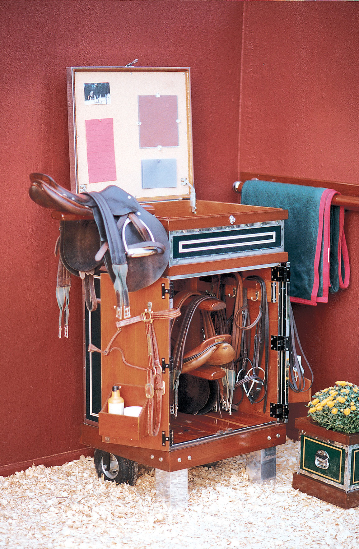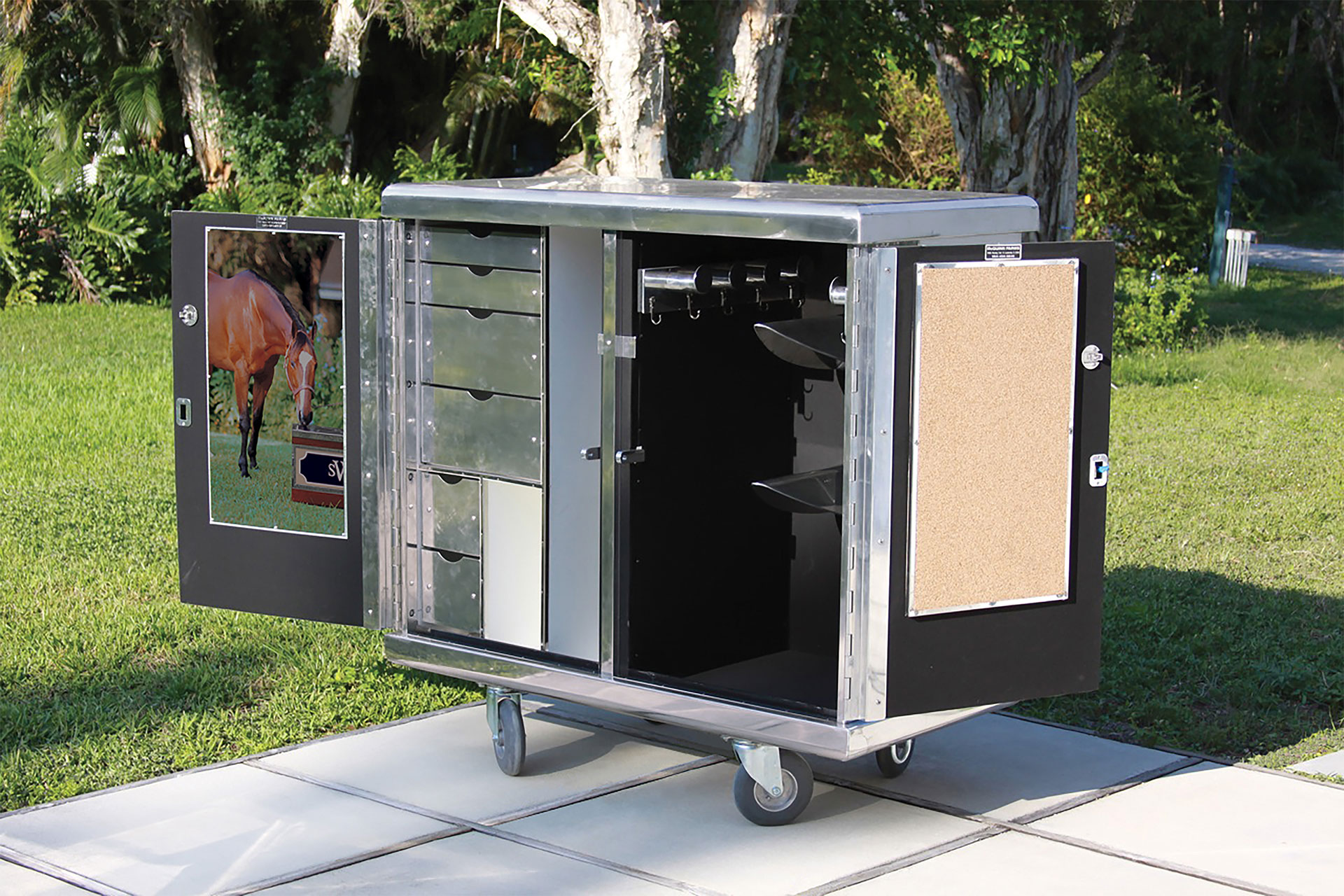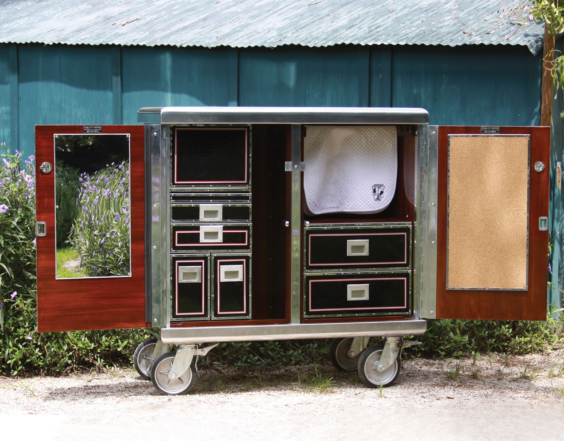 The Verticals, with their strong handles on the back and all terrain tires make an ideal system for a portable tack room, wardrobe, or medicine box.