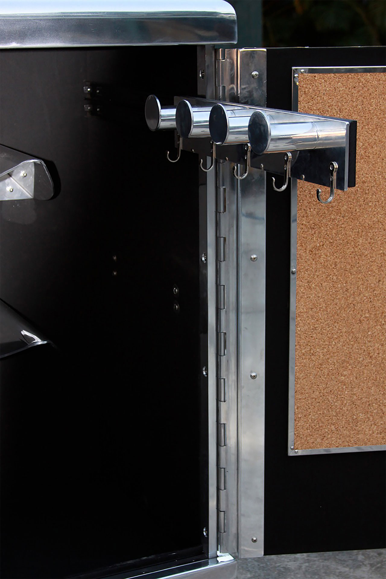 We designed this box to address the persistent “where’s my?” problem. Where’s my tie? What happened to my coat? Did I remember my raincoat?