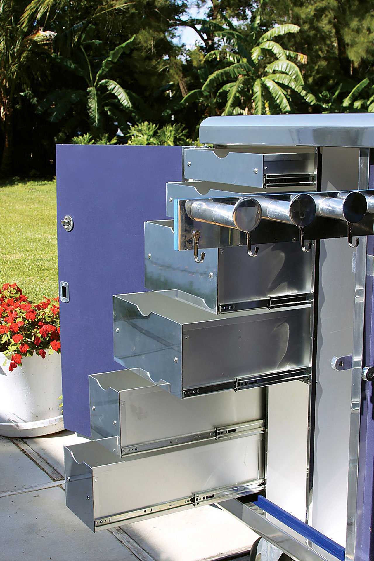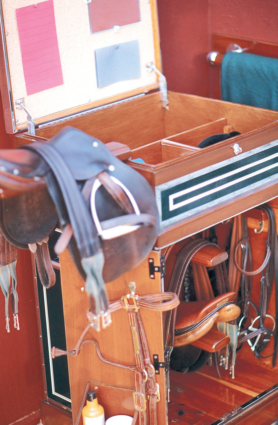 The bridle racks, saddle racks and drawers are on slides for easy use and access. There are many places, hooks, and hangers to put things.
