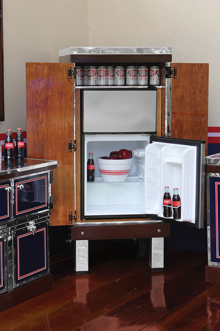 The Refrigerator/Freezer Vertical keeps ice, drinks, snacks and, of course, carrots cold. It also keeps medicines at the proper temperature. It can be made with a compartment at the top to store Coke cans.