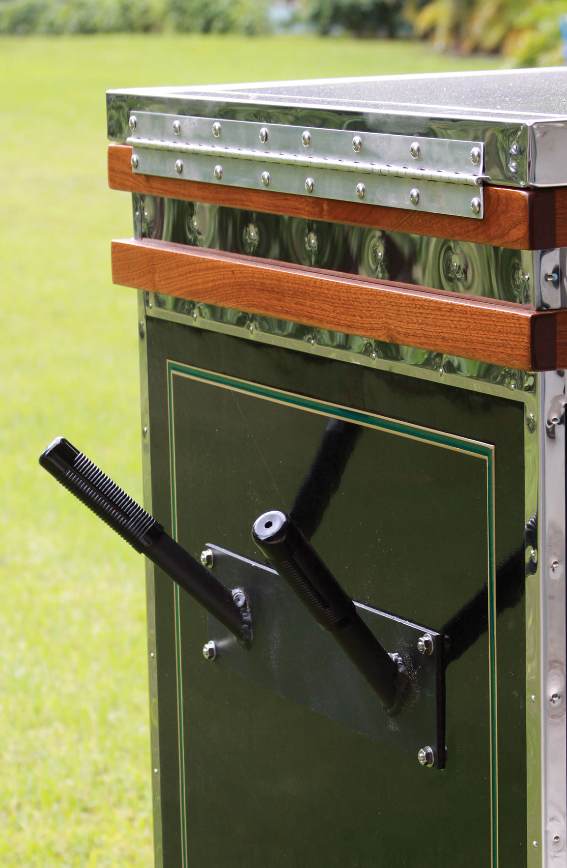 Handles mounted on the back for tilting the Vertical to wheel it. They are also removable.